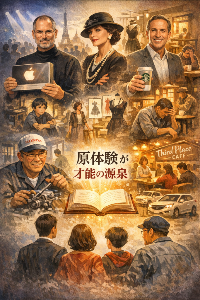 定職に就けず居場所を失った父の悲しみを見て、家庭でも職場でもない安らぎの「第三の場所(サードプレイス)」を世界中に広めたスターバックのシュルツ。